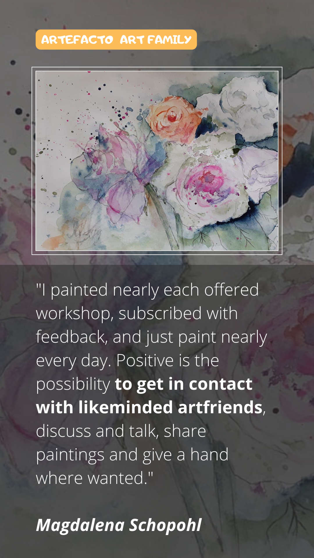 Many of our workshops contain the tasks to upload your paintings and after completing those you earn the ArtiCoins that you can later redeem in ArtiStore that has 100+ learning products with lifetime access! Earn and learn for free!