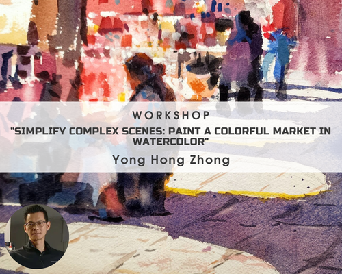 Goals: Learn how to transform a busy street market into a clear, expressive watercolor using a simple value study. Follow internationally recognized artist Yong Hong Zhong step-by-step — even if complex scenes usually feel overwhelming.