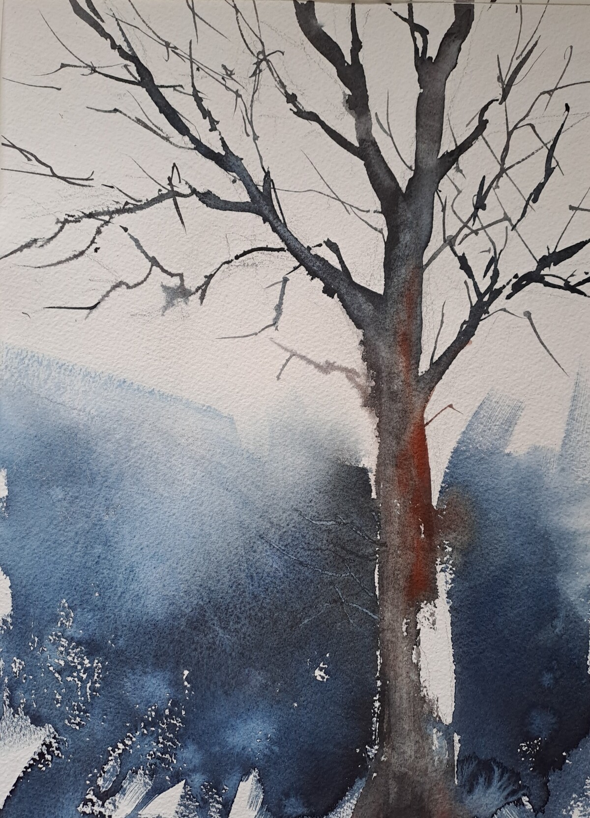 We will apply the principle of Notan to express our idea, painting dark on light.We will learn the techniques to simplify and suggest trees and figures.