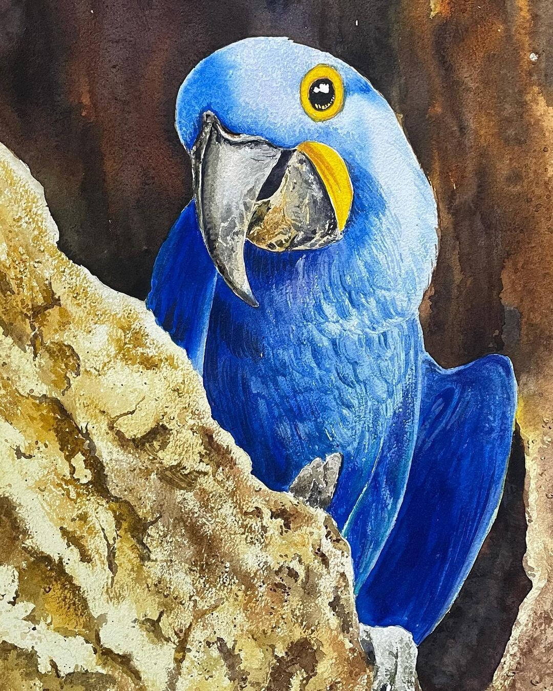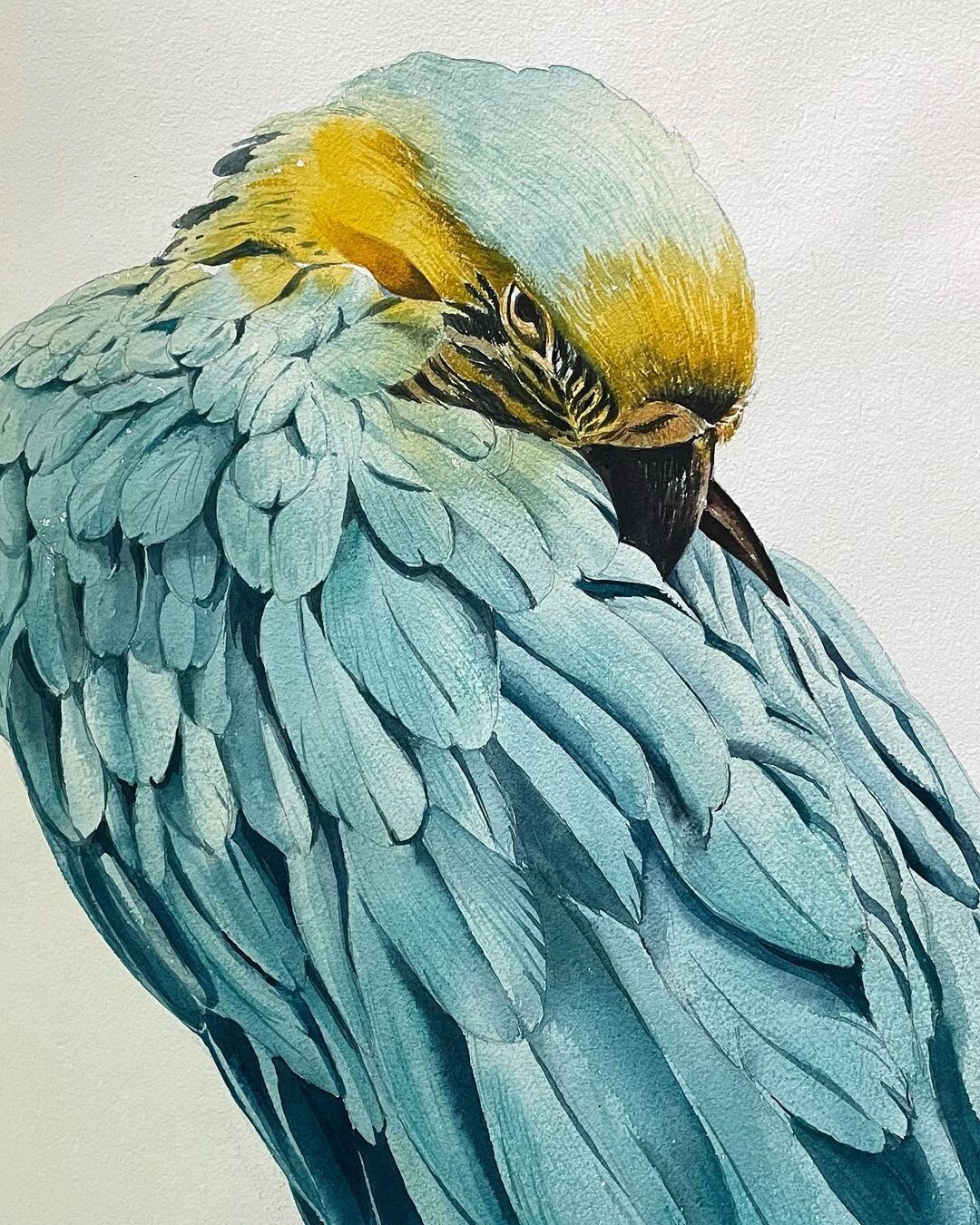 This is a lesson where you will learn to build dark watercolor layers, saving transparency and making highlights. You will see how to create a rich blue color containing many shades and contrasting with bright yellow of neck, head, and beak. Rajat will tell you about nuances of anatomy and observing proportions when painting from quite an unusual angle.