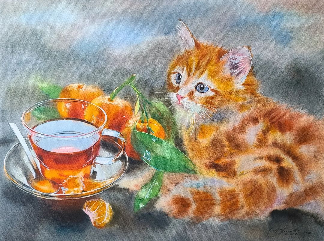 Совместите потрясающий реализм и эффектные акварельные приемы и напишите три выразительных кошачьих портрета вместе с Любовью Титовой