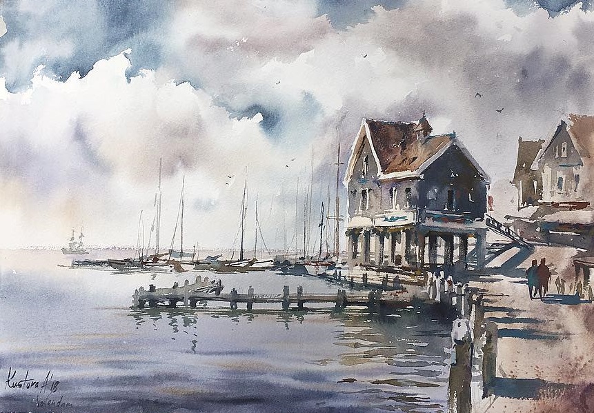 We will plunge into the atmosphere of a European city. Learn how to simplify background buildings and vegetation, paint water with waves and dynamics from a boat, and add watercolor effects.