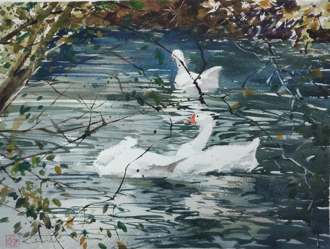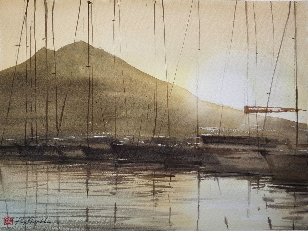 Научимся писать отражение неба в воде, изображать закат при помощи ограниченной палитры, использовать полный набор тональных оттенков - от белой бумаги до непрозрачного темного тона.