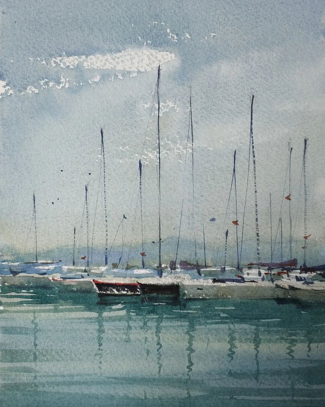 Научимся передавать блеск воды на солнце, свет через прозрачный свет облаков, предметы освещенные сзади и рефлексы в тени.