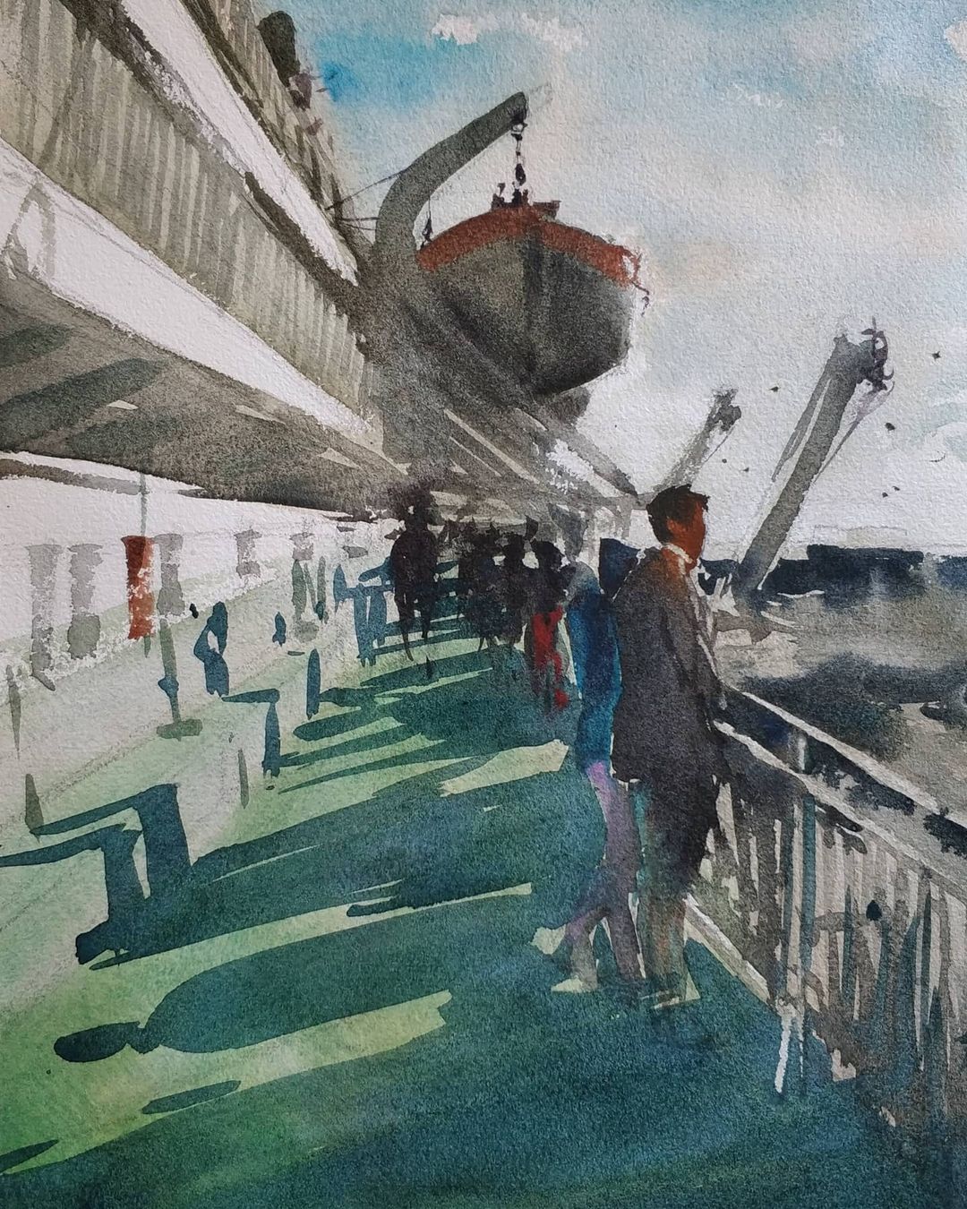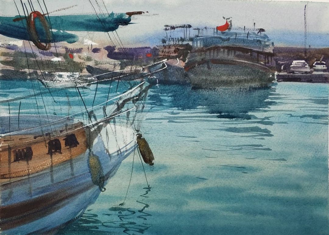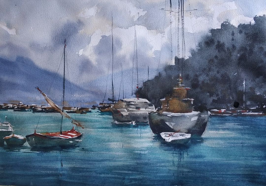 Научимся передавать блеск воды на солнце, свет через прозрачный свет облаков, предметы освещенные сзади и рефлексы в тени.