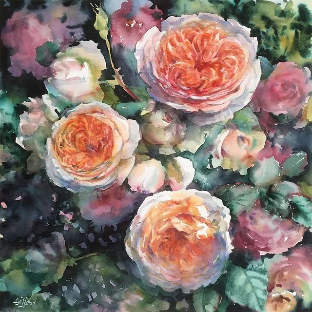 Научитесь рисовать розы в техниках по-мокрому и по-сухому.