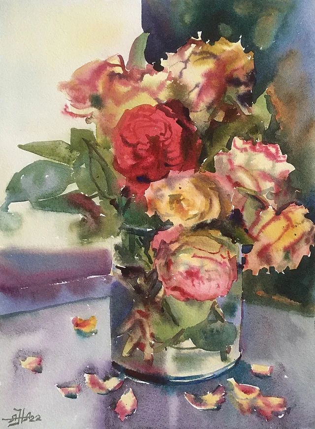 Научитесь рисовать розы в техниках по-мокрому и по-сухому.