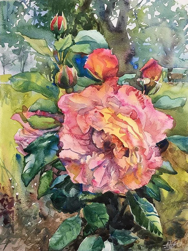 Научитесь рисовать розы в техниках по-мокрому и по-сухому.