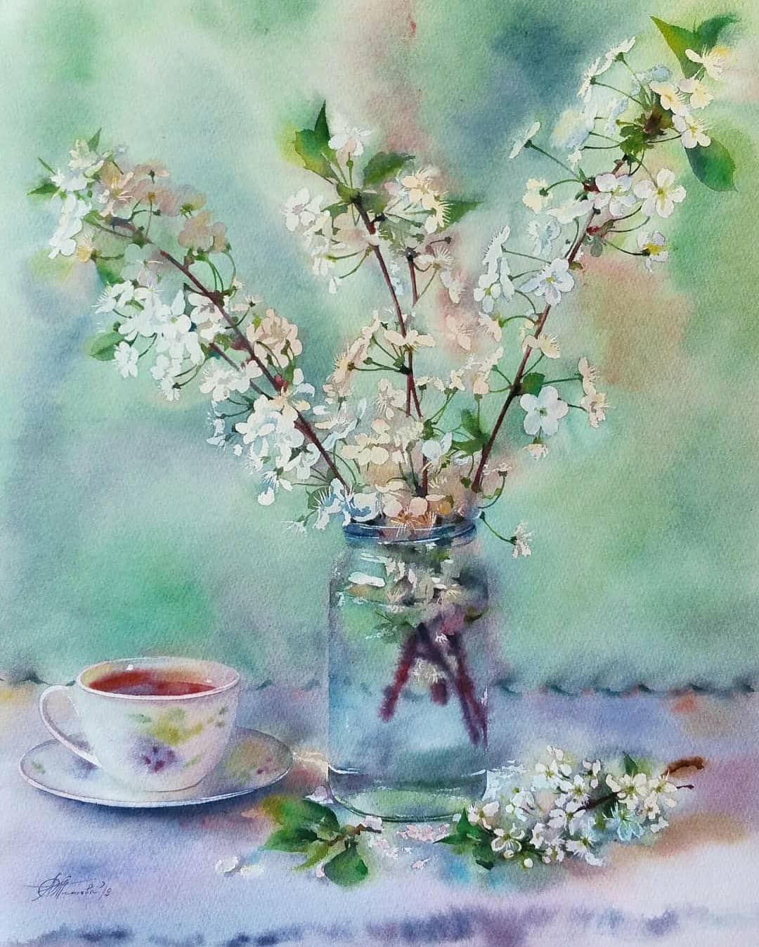 Научитесь искусно передавать красоту цветов и прозрачную хрупкость стеклянных предметов в акварельной живописи
