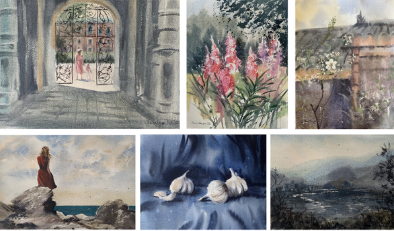 Apply dry brush, lifting, splashing, granulation, masking, glazing in different motives.