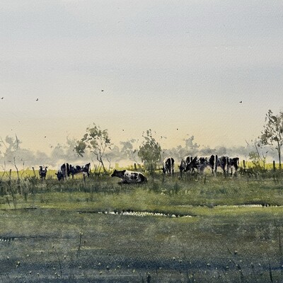 Learn to build atmosphere through subtle shifts in temperature and value, and how to naturally integrate figures like cows into your landscapes. Discover techniques to guide the viewer’s eye using warm-to-cool transitions.
