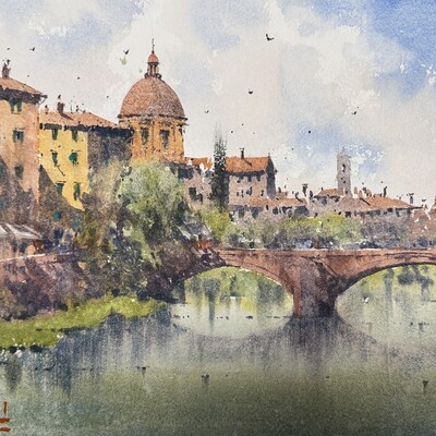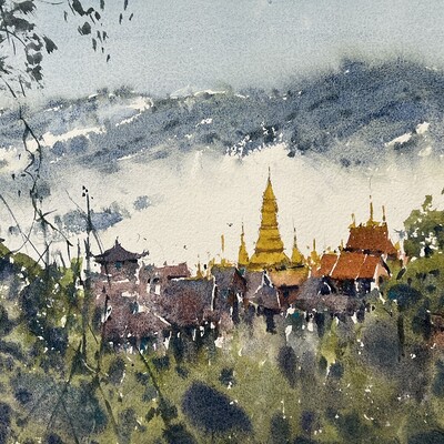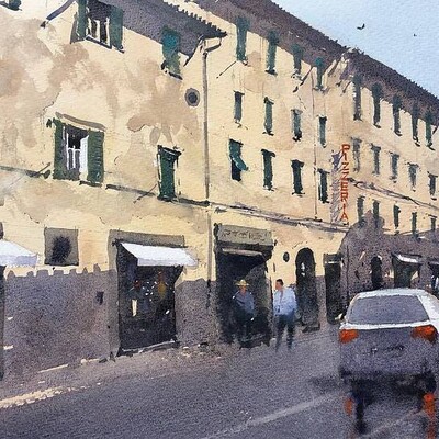 Learn to capture golden hour light using bold, unexpected color combinations. Master creating fluid transitions within a single wash and simplify complex architecture while maintaining depth.