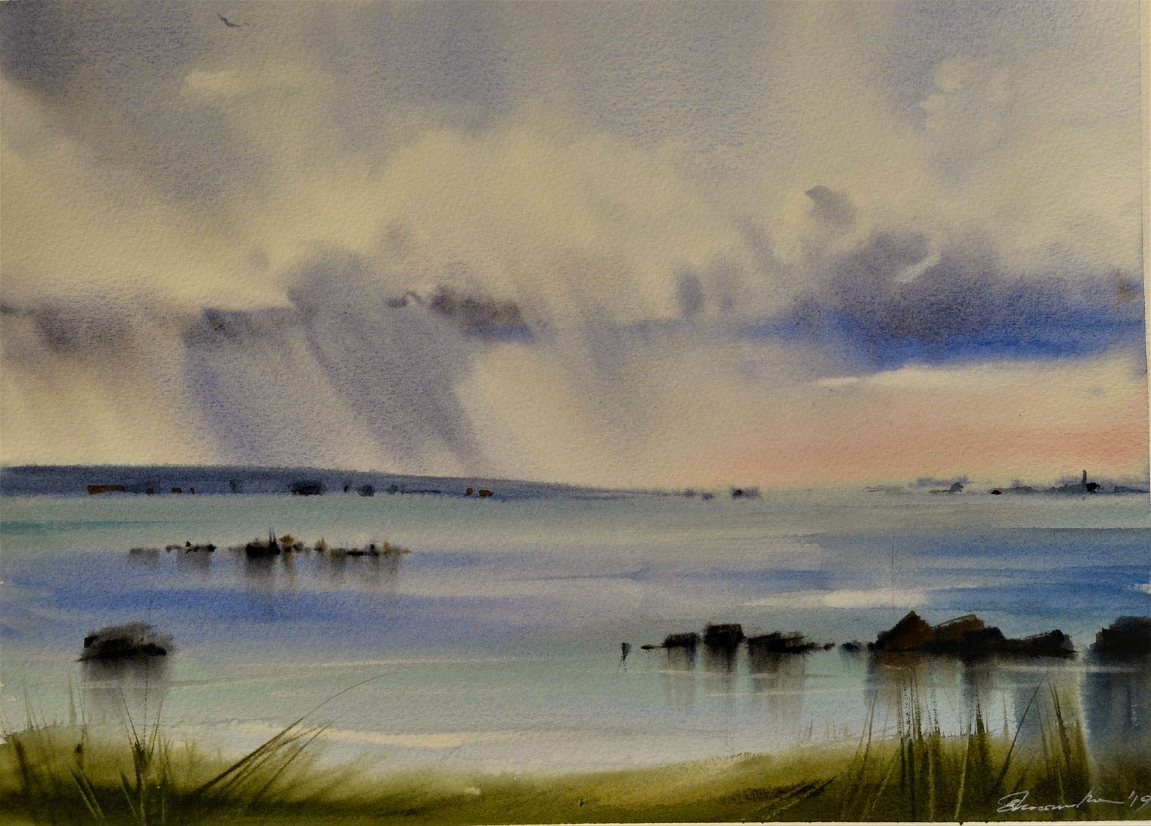 Научитесь изображать водную гладь в акварели.