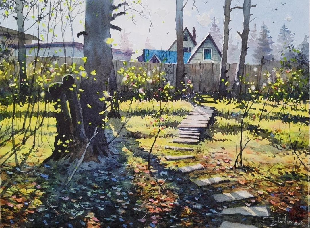 Сосредоточимся на изображении нежного весеннего света в контражуре, изучим техники работы с мокрой и сухой кистью для передачи деталей на переднем плане и придания жизни нашим работам.