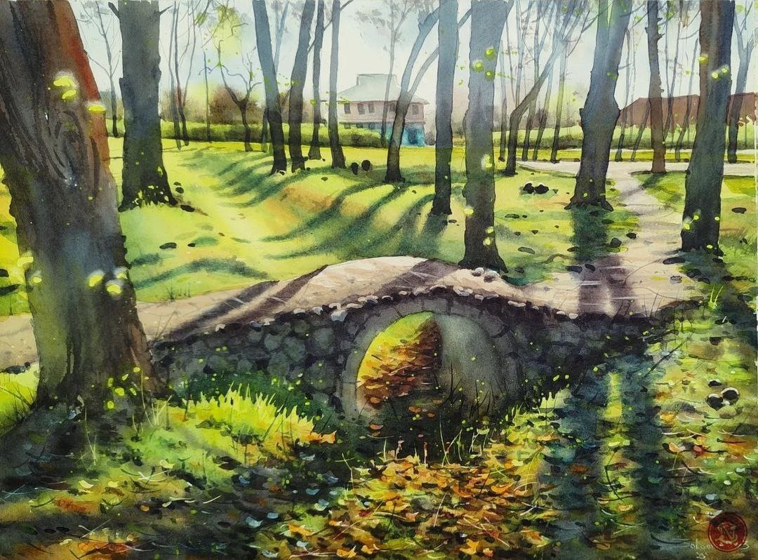 Сосредоточимся на изображении нежного весеннего света в контражуре, изучим техники работы с мокрой и сухой кистью для передачи деталей на переднем плане и придания жизни нашим работам.