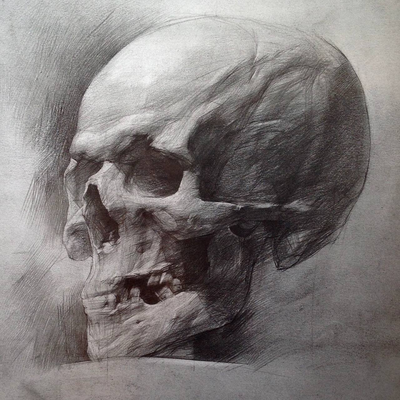 Anatomy, proportions, details, and realism of the skull. The result is a drawing from scratch.
