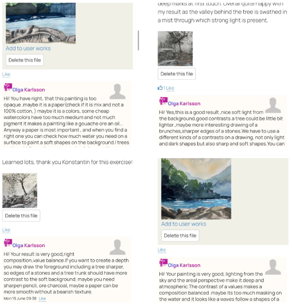 - They share advice, discuss drawings, and give feedback on them