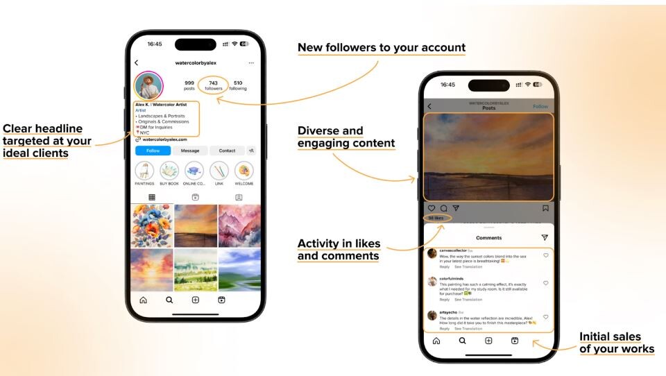 Grow your social media presence wisely and monetise your art with our practical course tailored for artists