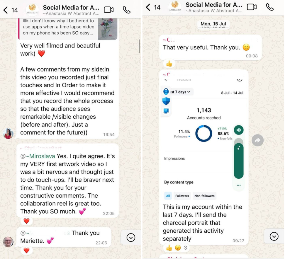 Natalia - Social media manager of Artefacto's Instagram and Facebook accounts- Created dozens of viral reels which reached millions of artists worldwide⠀