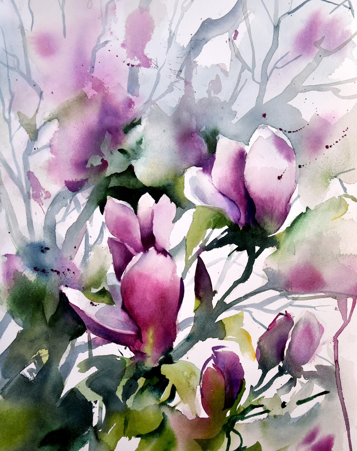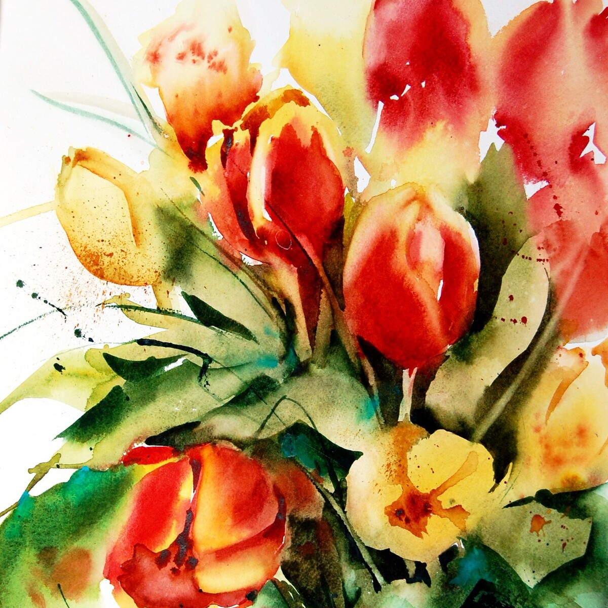 Learn the initial approach to the negative technique through two simple exercises. Paint a floral subject using the three main techniques (positive, wet-on-wet, negative).