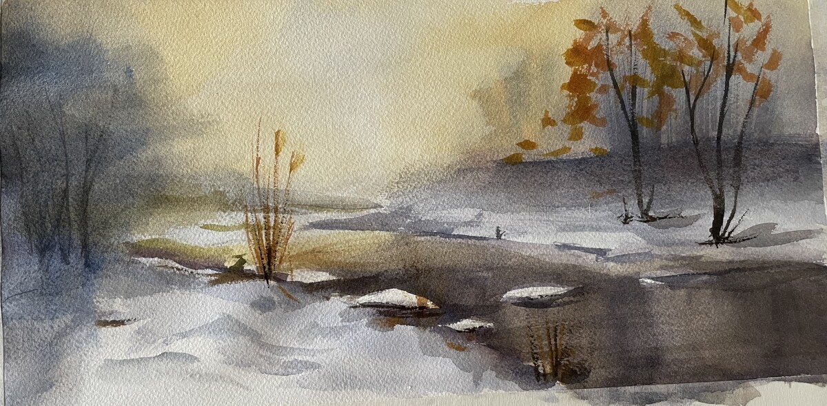 During the course, you will learn the secrets of painting watercolor light, mist, and air, and create 4 atmospheric landscapes in the wet-on-wet approach. You will get to know how to form composition and perspective, choose the correct place for the center of interest on paper, emphasize the main objects, make accents, and find effective color combinations.