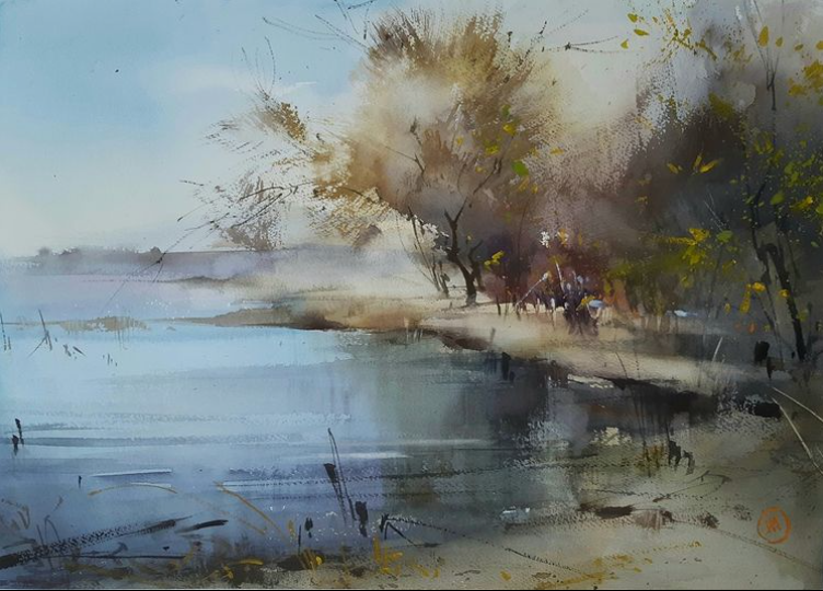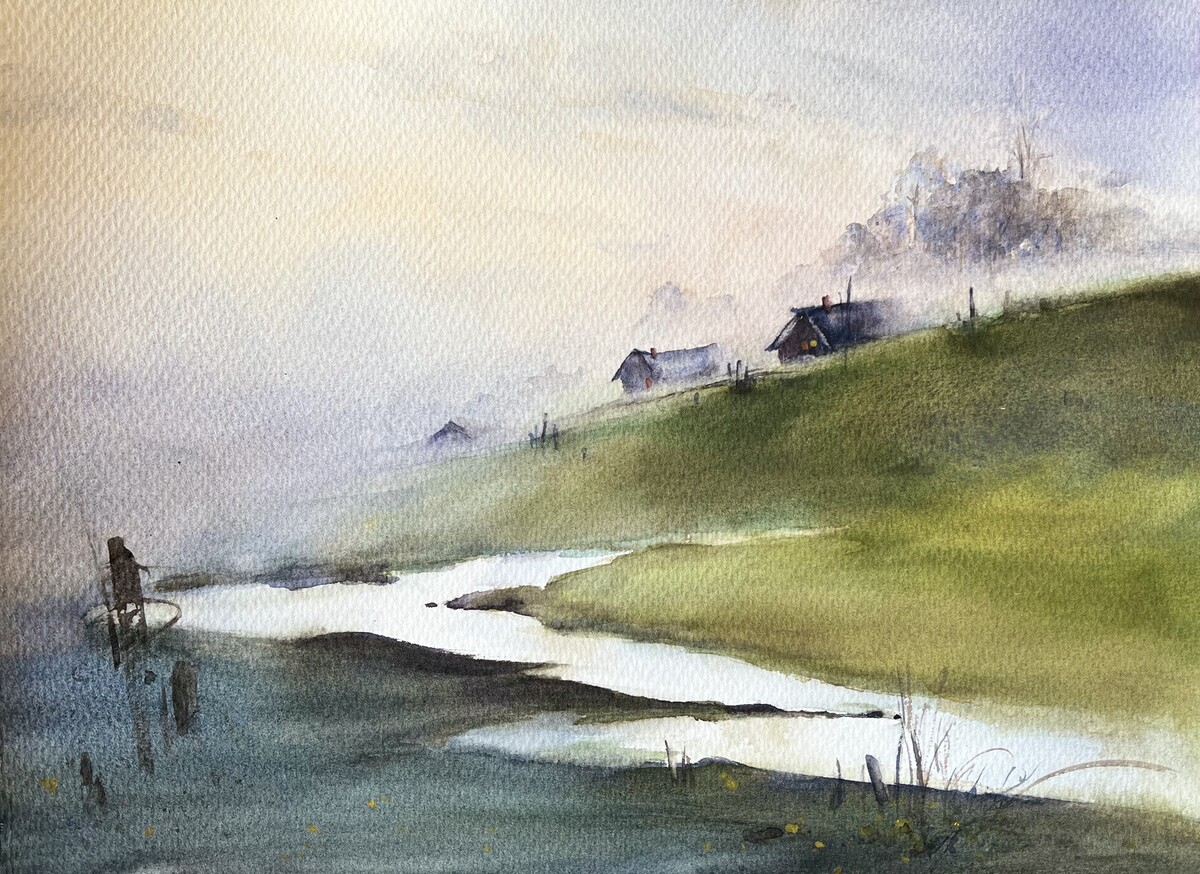 We will see how to show the relaxed state of nature, paint morning mist, capture and depict misty air, and create a peaceful morning atmosphere.