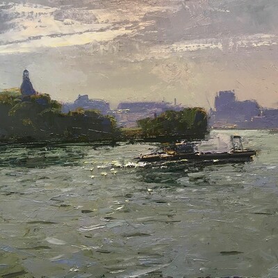 Заложите тональную основу пейзажа. Выделите линию горизонта, наметите берега реки с учетом линейной перспективы. Отобразите деревья на переднем плане и научитесь писать прозрачную листву. Поймете, как правильно писать пейзаж с фотографии и делать его реалистичнее. Научитесь отделять передний и дальний план тоном. Научитесь писать воду и отражение в воде, наметите облака на небе.