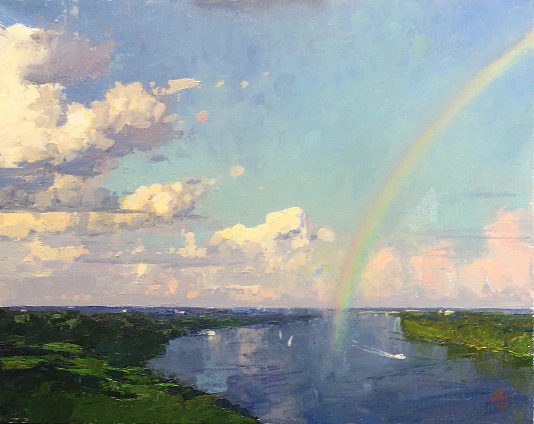Научитесь подбирать цвета для правдивого изображения восхода солнца. Узнаете, как создавать в небе эффект мерцания с помощью многослойности и нюансов. Разберете каждый участок неба на разные цвета и осторожными движениями оживите его. Узнаете, как плавно отобразить более плотное небо у линии горизонта. С помощью контраста объедините яркость и воздушность неба. Научитесь отражать восходное небо в реке. Узнаете, как изменится пейзаж через 5 минут после восхода солнца и добавите в работу утренний туман.