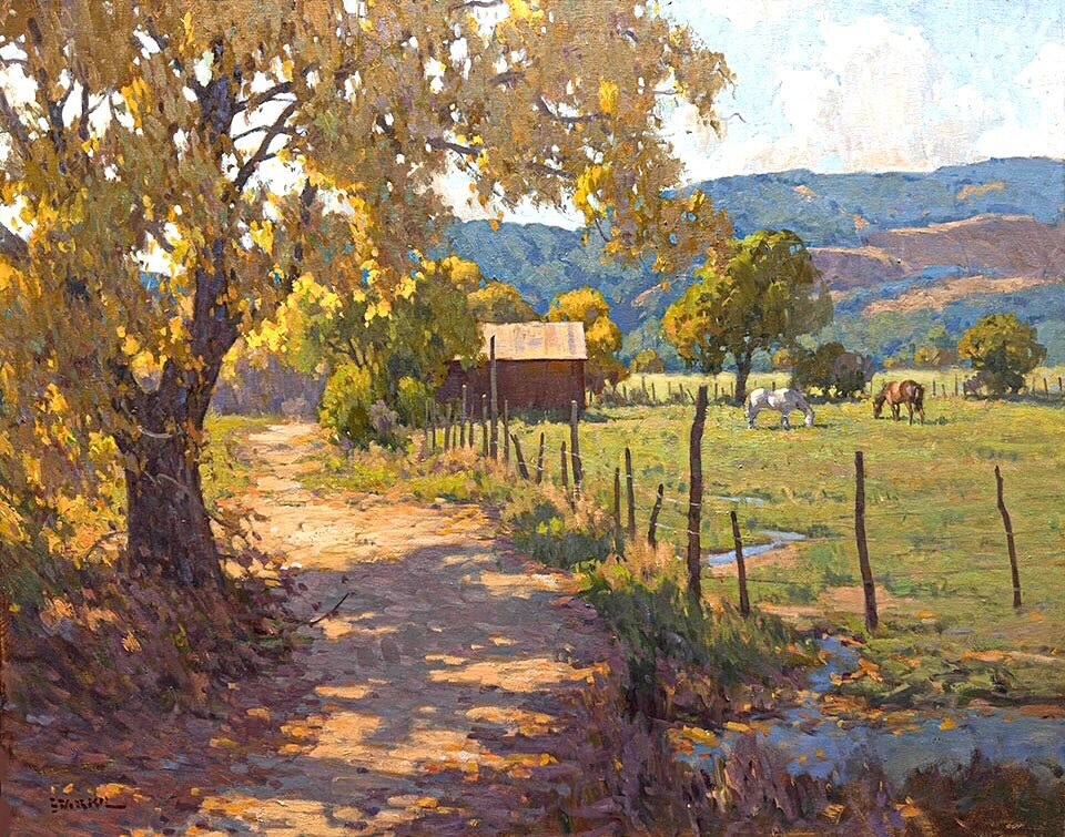 Master the art of painting warm sunlit landscapes in oil and make 2 expressive artworks and 3 color studies under the guidance of Phil Starke
