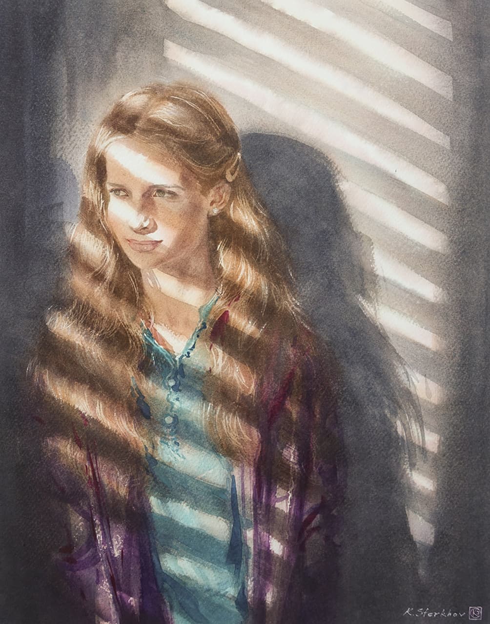 Изучите текстуру волос и отдельные части лица, сможете работать в разных акварельных техниках