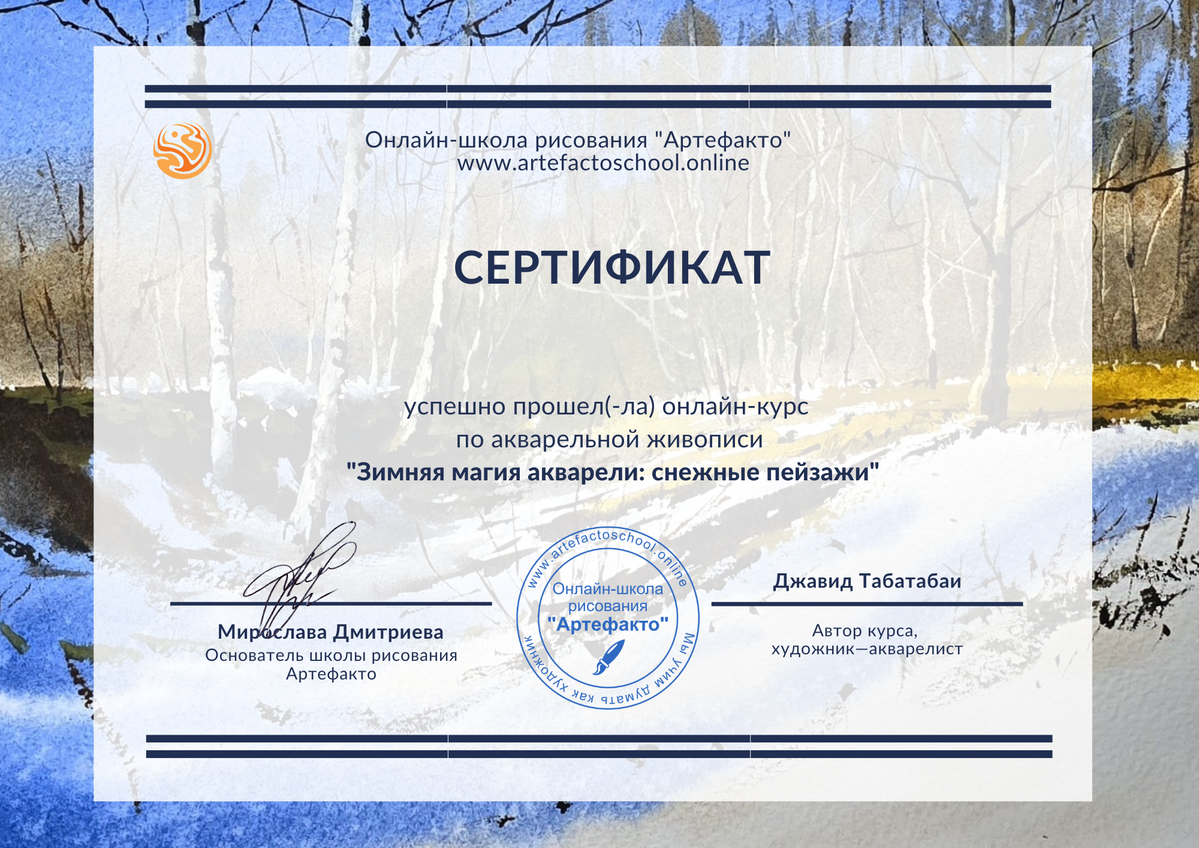 Под руководством опытного мастера Джавида Табатабаи вы изучите как базовые, так и продвинутые методы акварели. Джавид поделится своими знаниями о достижении атмосферных эффектов, написании света и тени и создании гармоничных композиций, которые погружают зрителей в безмятежность зимы.