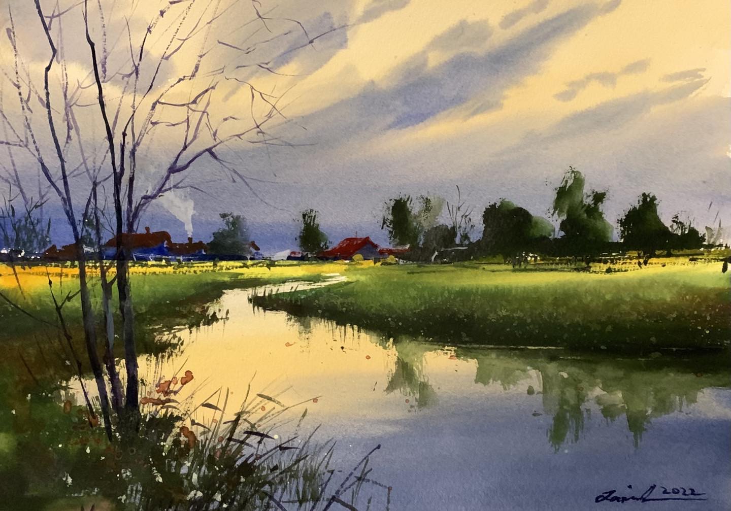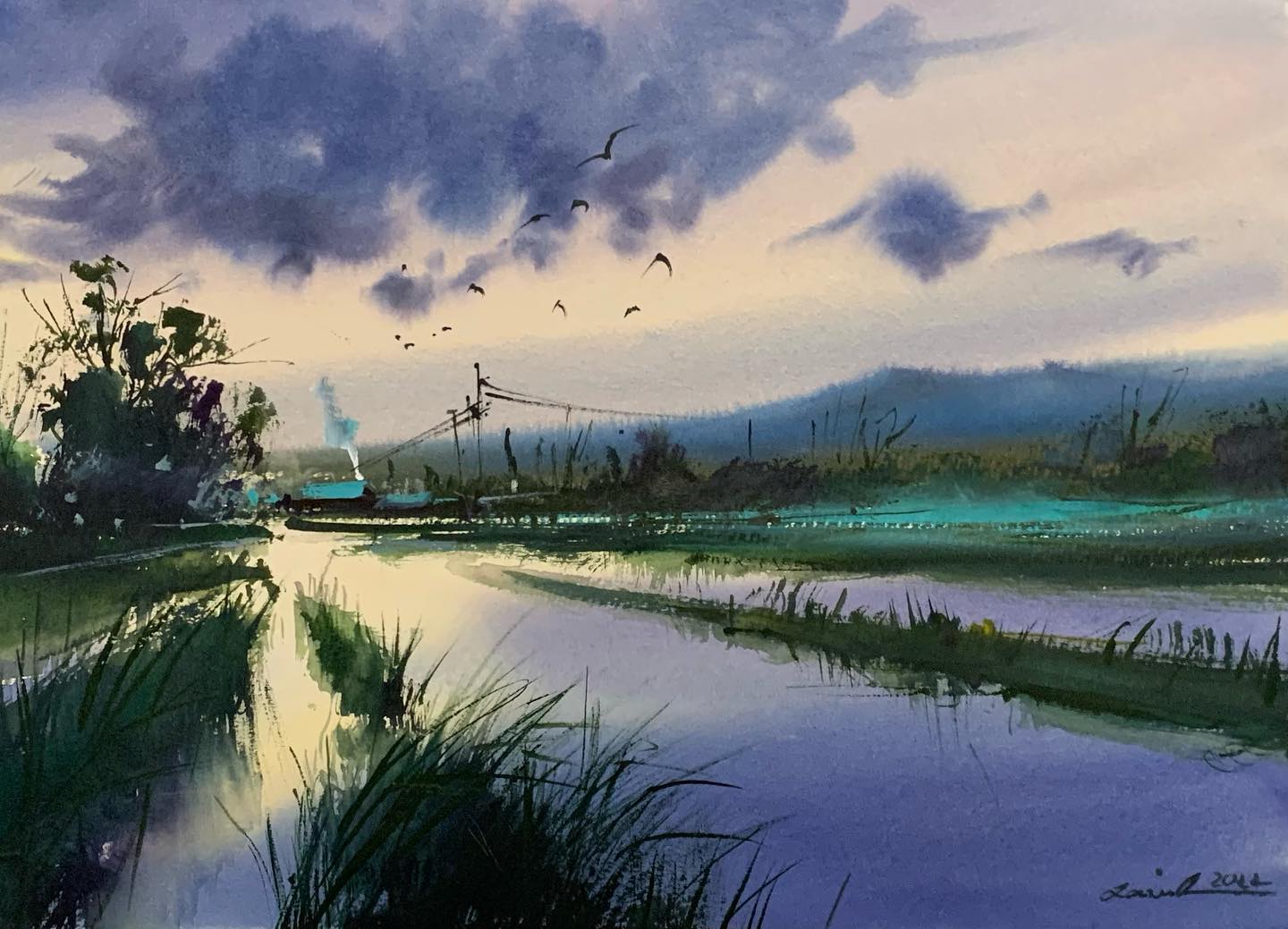 На этом уроке вы запечатлите безмятежную красоту зимнего пейзажа в сумерках, где последние лучи заходящего солнца отражаются в спокойном ручье. Под руководством Джавида вы изучите техники смешивания холодных и теплых тонов для создания гармоничного неба, переходящего от нежно-розовых до глубоких фиолетовых оттенков. Вы научитесь рисовать отражения на воде, добавляя реализма своим работам и создавая ощущение глубины.