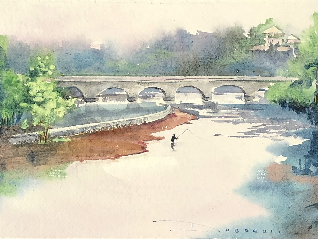 Learn to define and regulate the paper wetness, see how wet the paper should be for different results, and practice controlling water and pigment on paper. Create a small landscape using 4 stages of wetness in different areas.