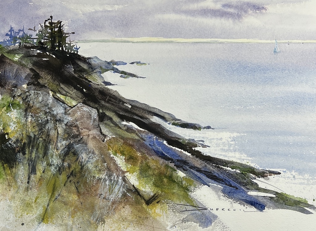 Learn to plan an effective composition paying attention to value, shape, perspective, lost and found edges. Paint a beach wave in a loose watercolor technique using the knowledge you gained.