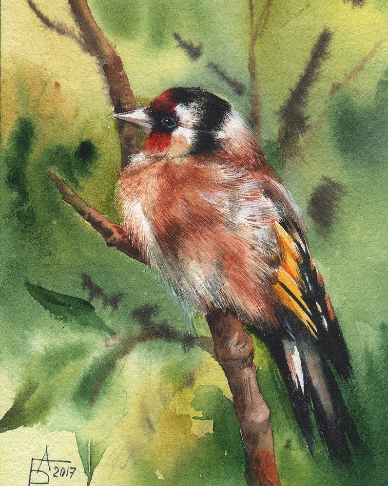 Вы напишете 3 восхитительные акварельные картины: цаплю, щегла и манлиновку