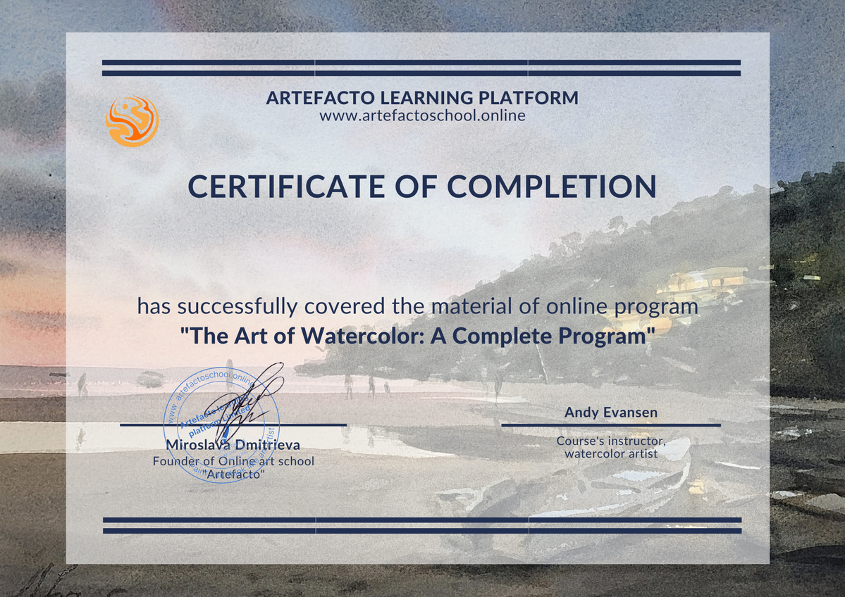 Upon completion of the learning program, all students will receive a certificate. The certificate could be used as a proof of your qualification's upgrade at work (if it is related to arts) and for your private affairs as a recognition of your mastery in painting.