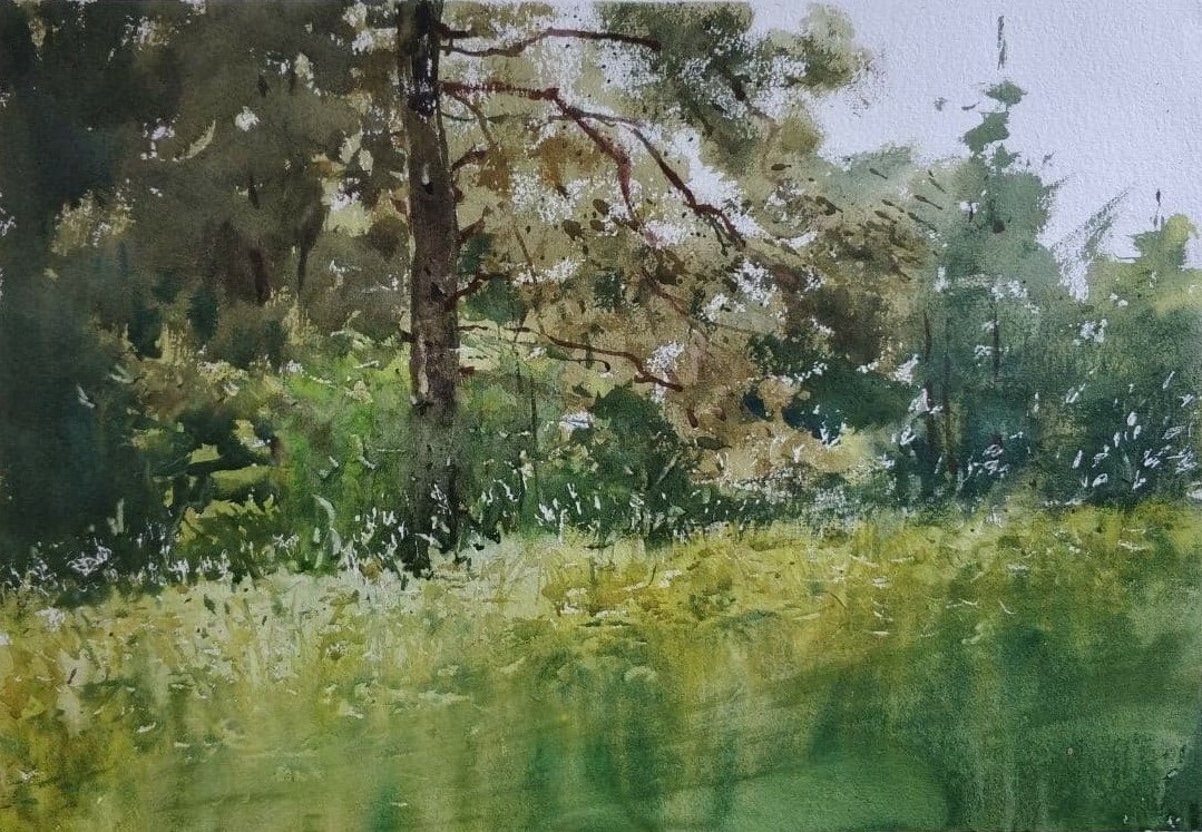 Акварельный скетчинг без карандаша