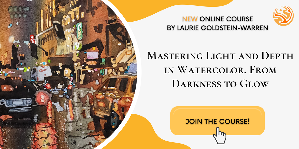 Goals: Learn Laurie Goldstein-Warren’s award-winning Dark-to-Light watercolor method – a step-by-step approach that will help you achieve luminous, atmospheric paintings and total control over tone, water, and light.