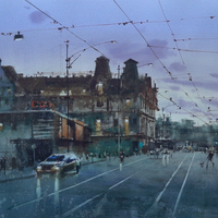 - Икона городской акварели – атмосферные городские пейзажи, мокрые улицы, драматическое освещение.