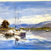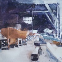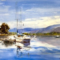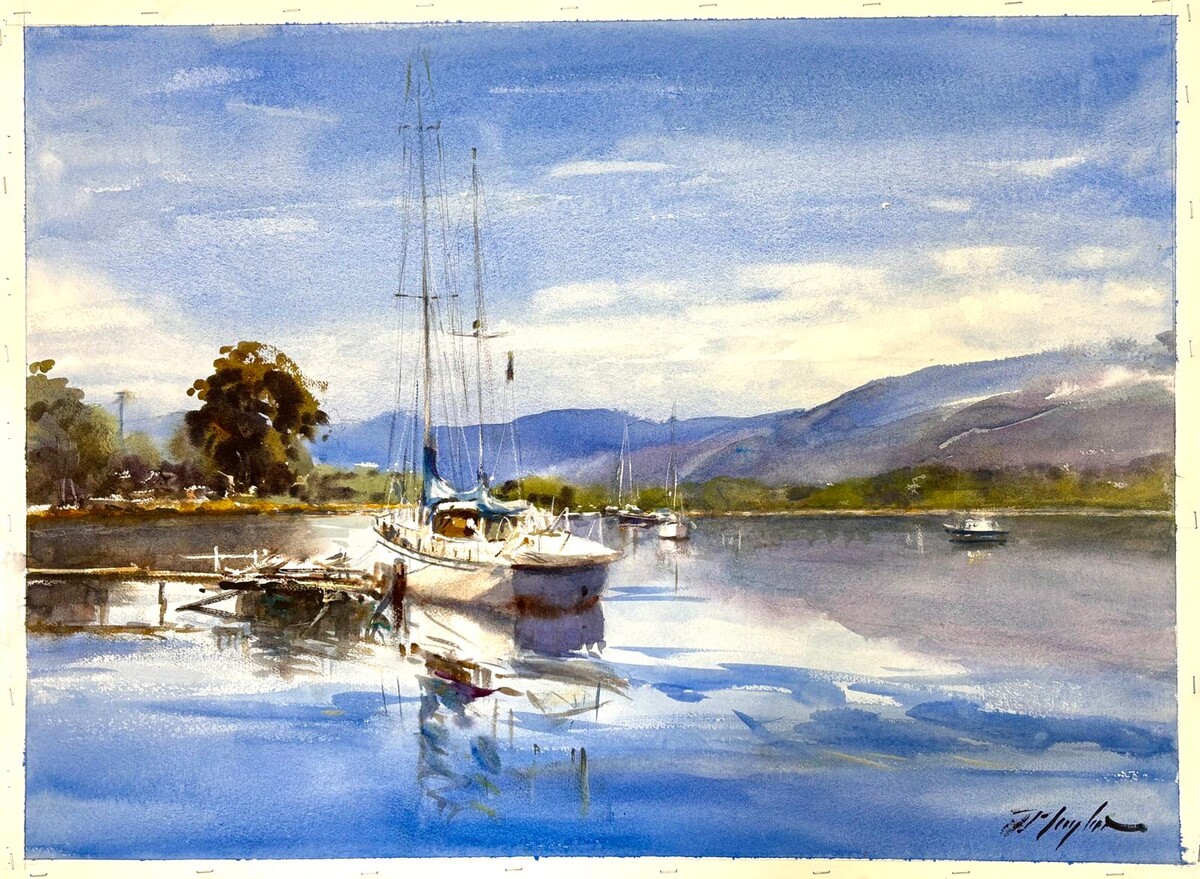 Результат: Вы напишете атмосферную сцену с лодкой, вдохновленную Франклином, Тасмания, и сосредоточитесь на упрощении, контроле краев и тональной четкости.