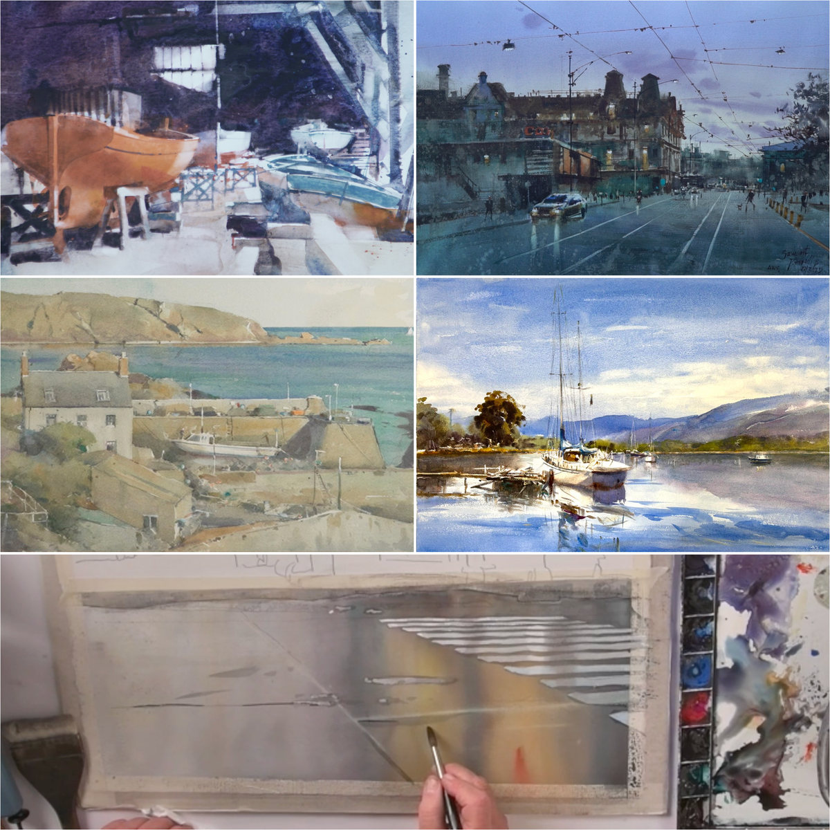Бросите вызов всему, что вы знаете об акварели. Марк пишет от тени к свету – в обратном порядке по сравнению с традиционными методами – используя всего четыре цвета для создания графичных, выразительных морских пейзажей. Вы узнаете о его революционном подходе к мышлению формами, а не объектами, и о построении картин на основе тональной логики.