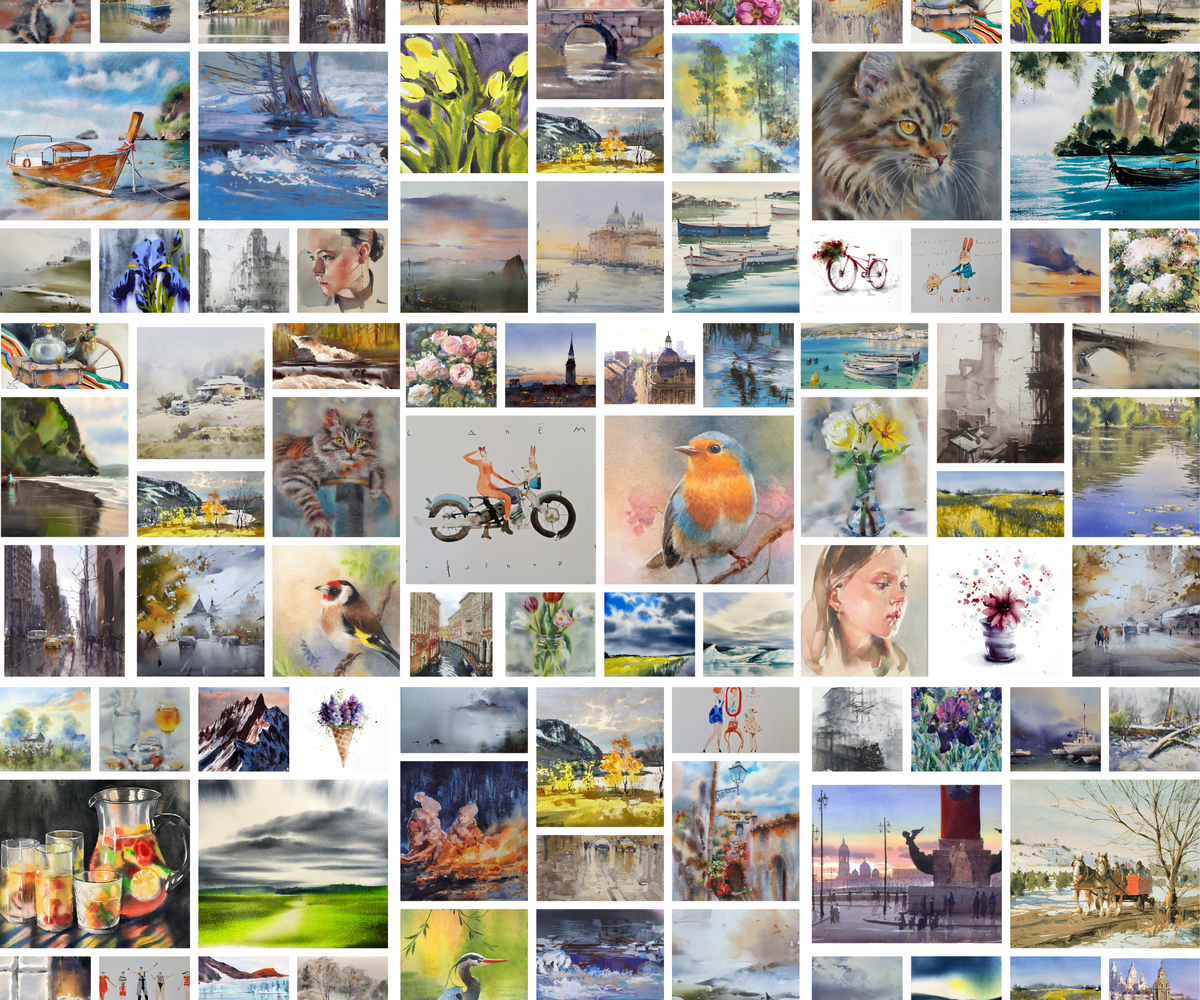 Научитесь управлять акварелью, избегать популярных проблем в работе с ней и подбирать материалы, с которыми улучшите свои картины.