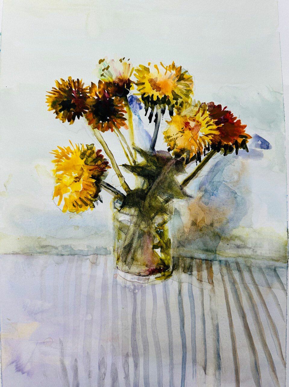 Этюдный (пленэрный подход). Именно в коротких этюдах мы фиксируем и затем передаем свои ощущения и они больше воздействуют на эмоции людей. Юлия не стремится показать все детали букета, а передает впечатления от него, где-то усиливая композицию, но при этом оставляя некую недосказанность в работе. Получается, что меньшими средствами и смешением акварельных техник и приемов доносит реалистичность и состояние цветочных букетов. Эта техника основана как на принципах импрессионизма, так и общих законах живописи.