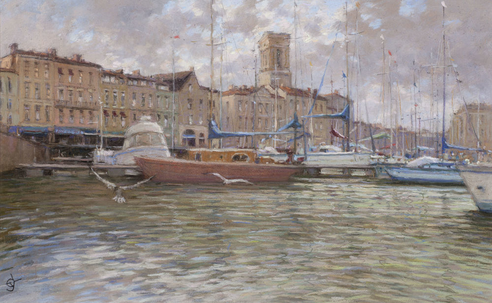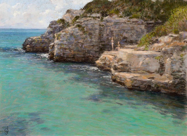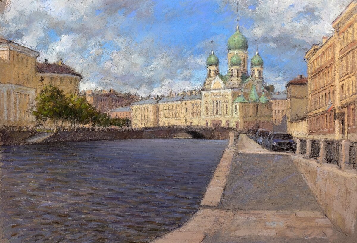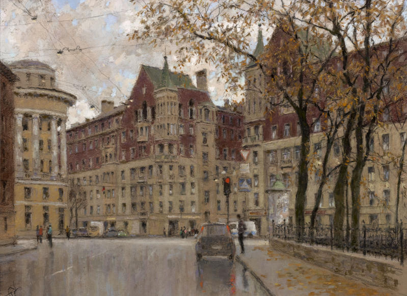 Техника Сергея - лессировка. Он наслаивает пастельные слои друг за другом, благодаря чему цвета просвечивают и создают сложные оттенки. В этой технике мы набираем тон и цвет постепенно, что позволяет видеть все ошибки на ранних этапах работы.