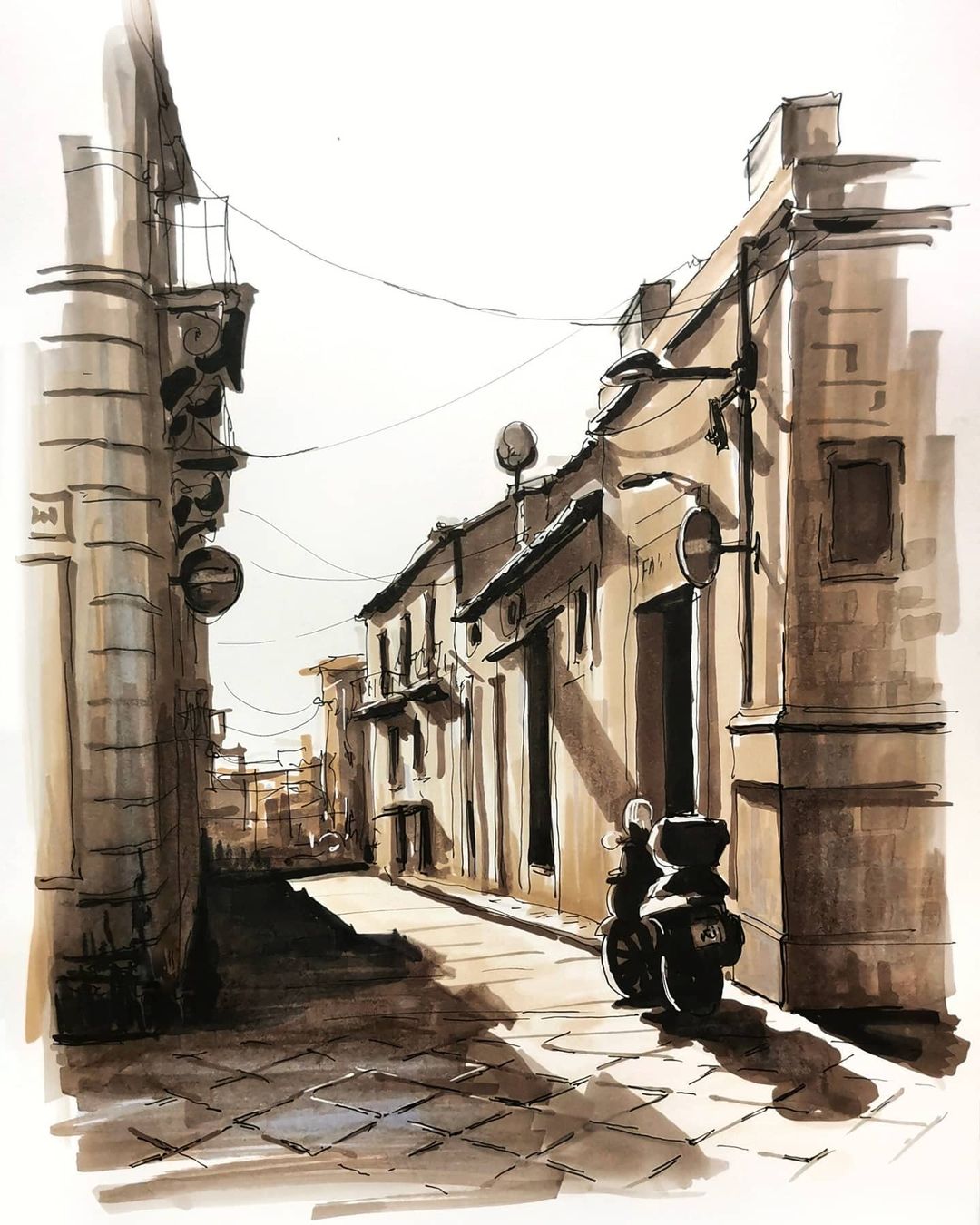 В этом уроке мы научимся передавать атмосферу жаркого солнечного городка. Поговорим как рисовать контрастные тени.