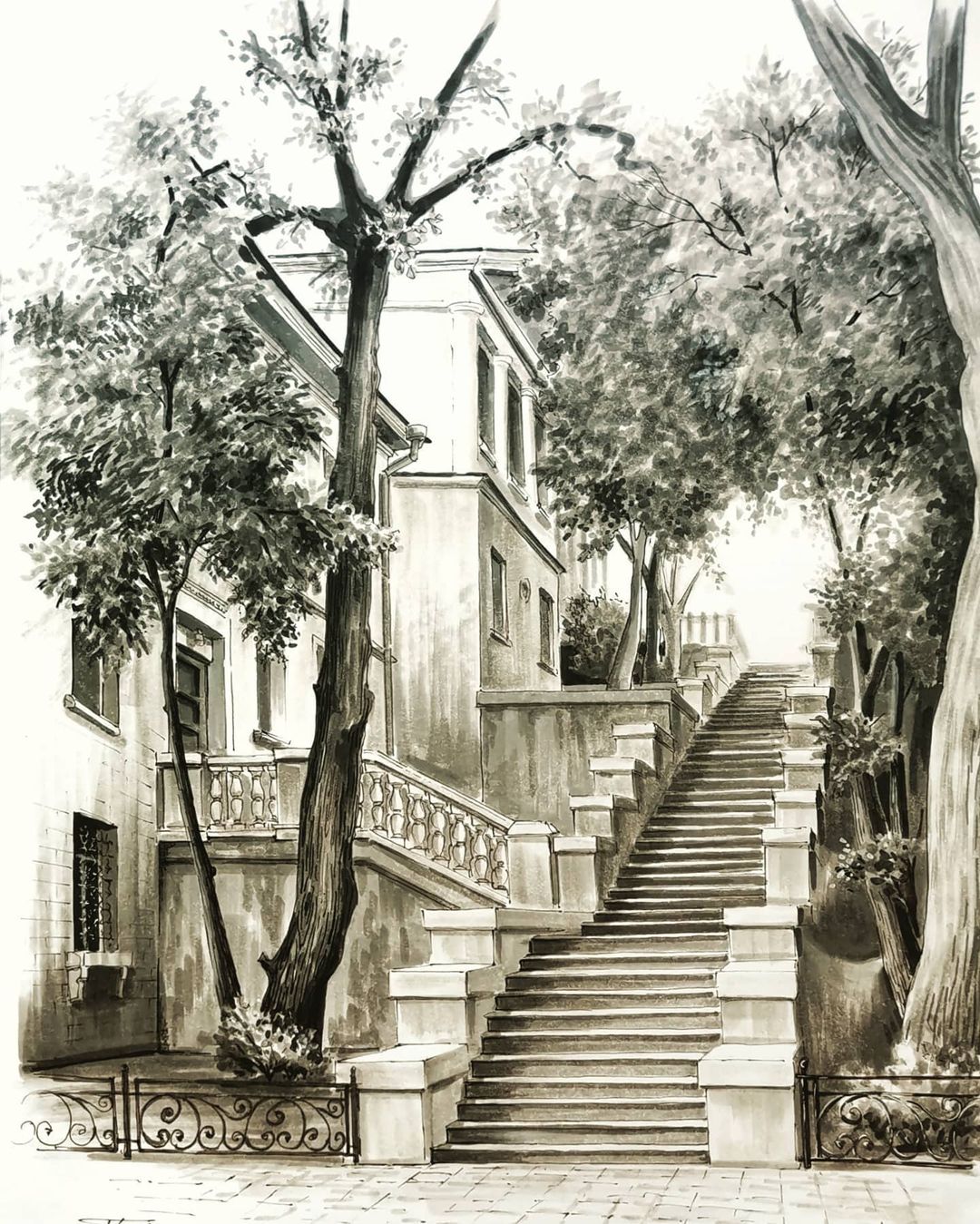 В этом уроке мы поговорим про угловую перспективу, как рисовать сложно ажурное здание убедительно, не вырисовывая каждую деталь, а так же “придумаем” цветущие деревья, чтобы подчеркнуть весеннюю атмосферу.