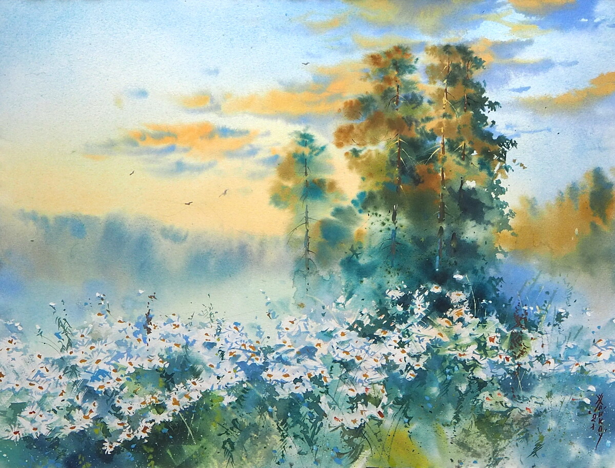 Узнаем авторские приемы и техники работы акварелью на мокрой бумаге с