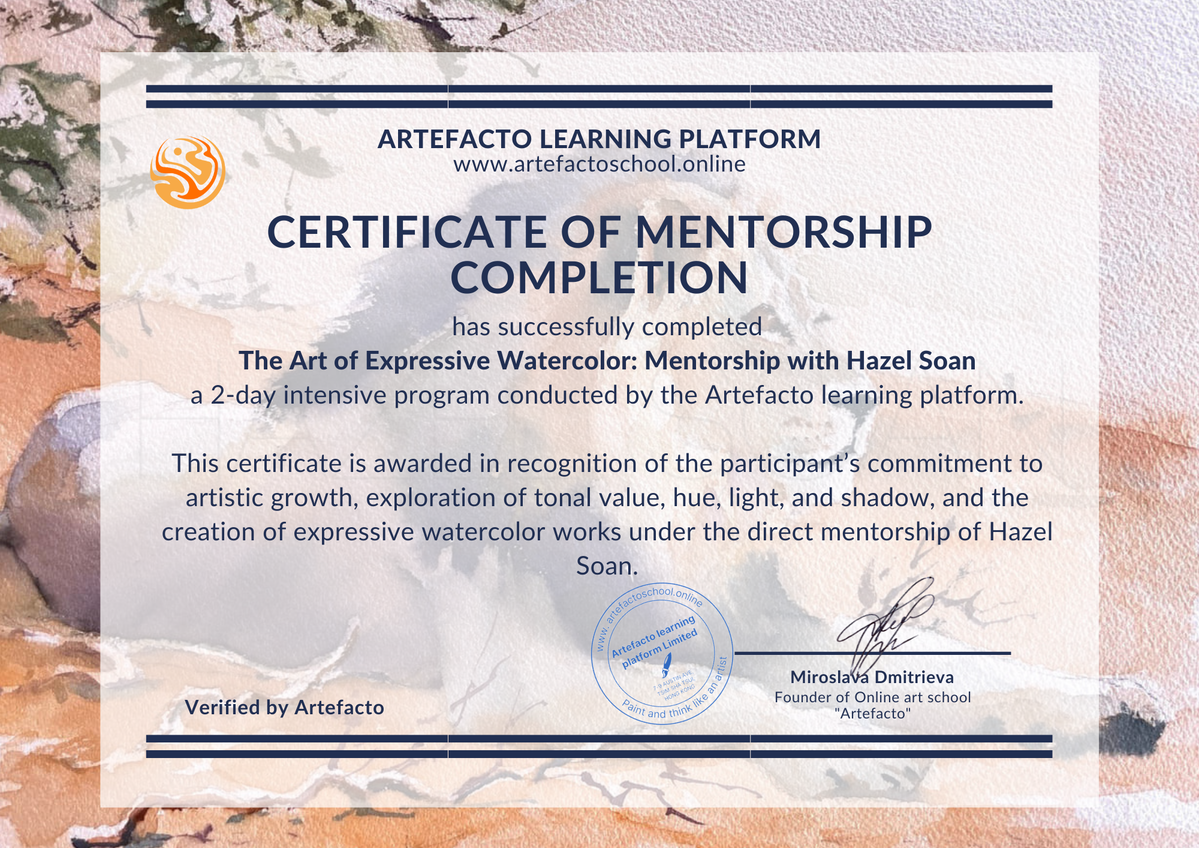 This certificate can serve as a formal recognition of your artistic growth — whether for professional use (such as teaching or applying for art-related roles) or simply as a meaningful milestone in your creative journey.