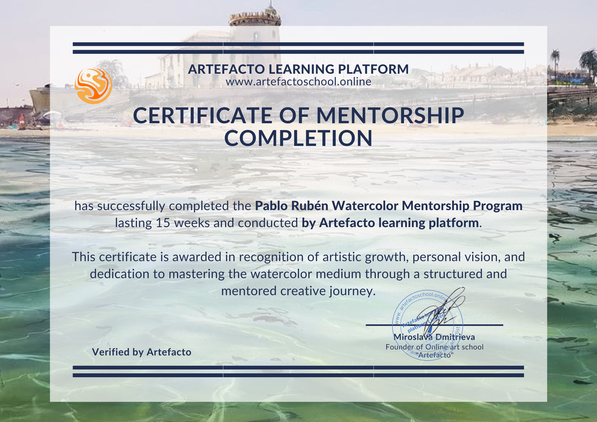 This certificate can serve as a formal recognition of your artistic growth — whether for professional use (such as teaching or applying for art-related roles) or simply as a meaningful milestone in your creative journey.