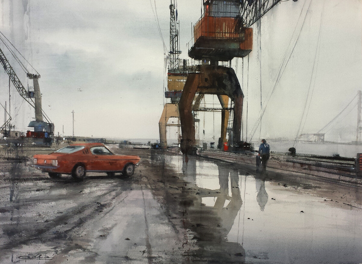 - His favorite subjects include industrial and urban landscapes, bridges, machinery, and water – depicted with striking realism and softness.